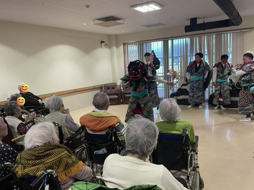 入居者の方の中には地元の方も多くいらっしゃり、獅子の舞と笛の音色に合わせた手拍子も聞こえてきました🙌